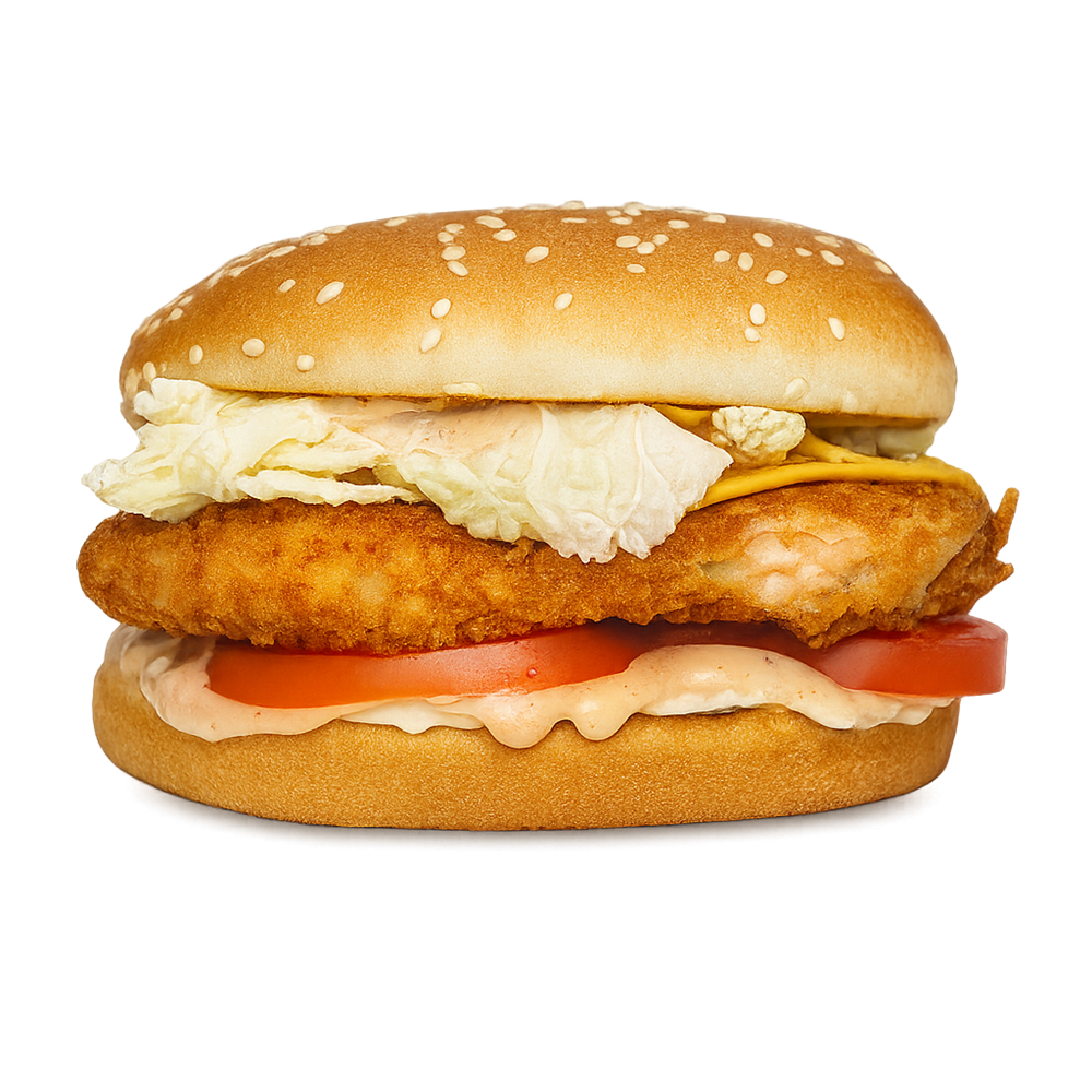 Булочка, Филе сёмги, Сыр Hohland, Сливочный сыр, Помидор, Бургер соус, Салат.