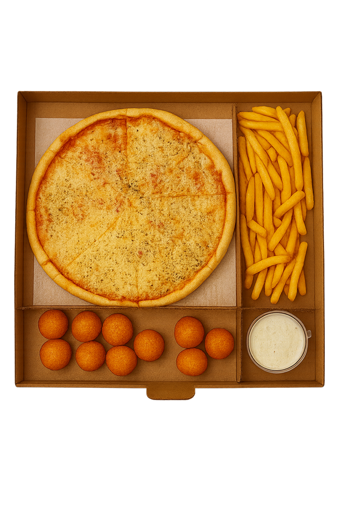 Пицца "Маргарита" 25см, Картофель фри, Сырные шарики, соус