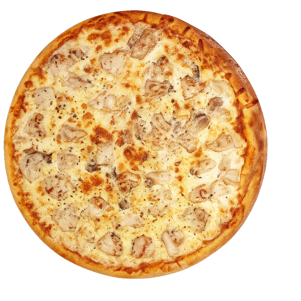 Соус, Сыр моцарелла, Сыр Чеддер, Грибной жульен (шампиньон, курица, лук репчатый, сливки) 32см.