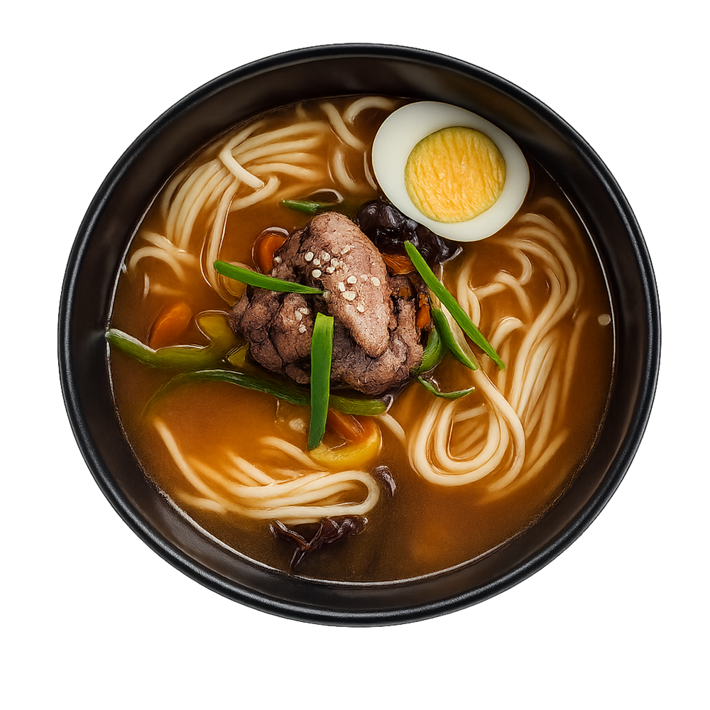 Лапша пшеничная, яйцо, устричный соус, острый соус, нори, петрушка, корейская специя, говядина