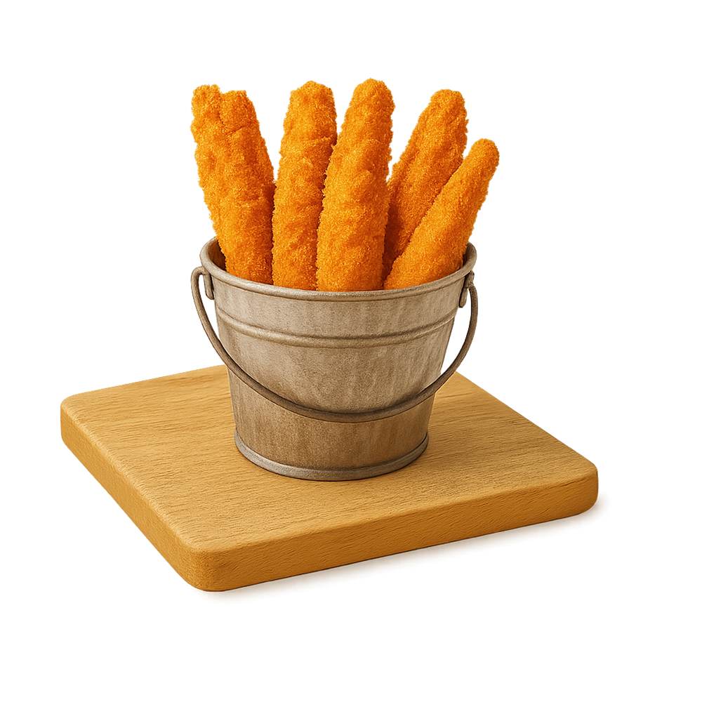 Куриное филе выдержанное в фирменном маринаде, с добавлением соуса карри, в хрустящей кукурузной панировке, обжаренное во фритюре.