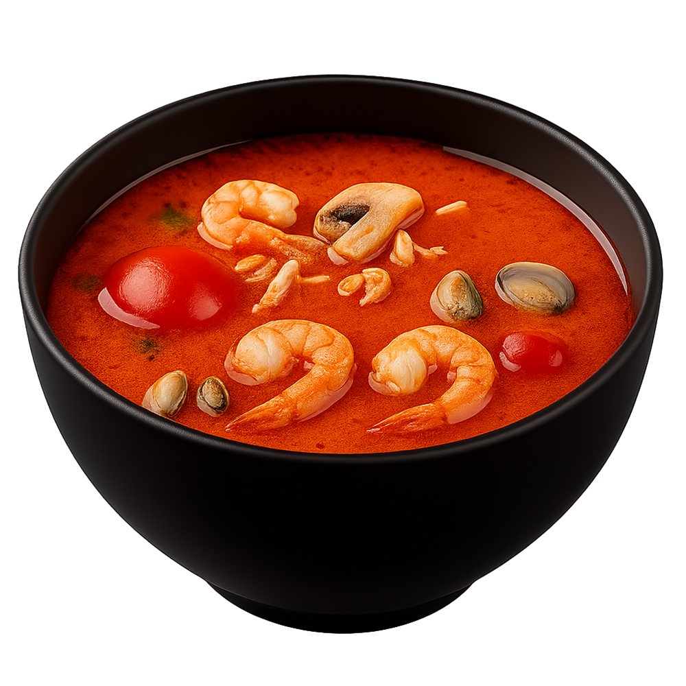 Традиционный острый Тайский суп на кокосовом молоке с морепродуктами.