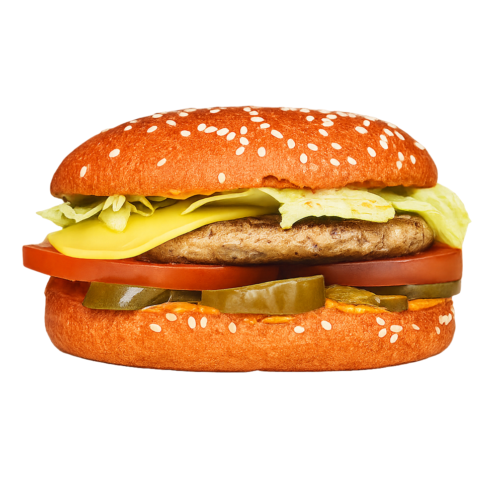 Булочка чили, Говяжья котлета, Халапеньо маринованный, Помидор, Сыр Hohland, Салат, Фирменный острый соус